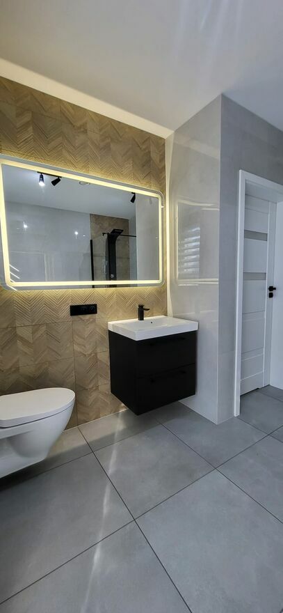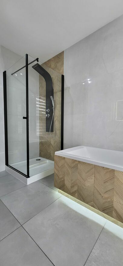 • duża łazienka z wanną i prysznicem