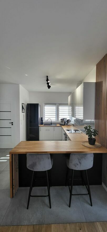 • nowoczesna kuchnia z dużą wyspą